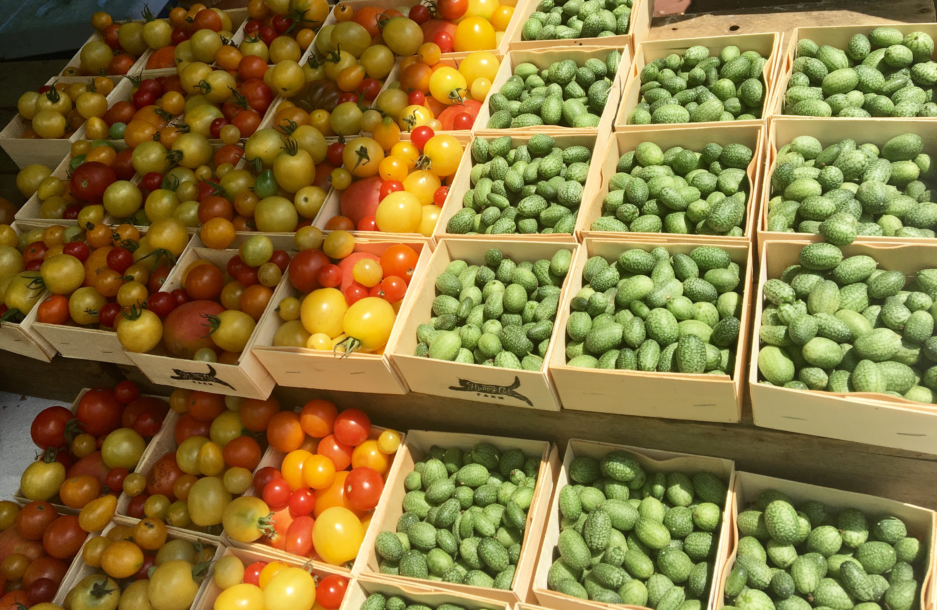 The heirloom tomatoes were gorgeous! The Mexican Gherkin cucumbers were super cool and the peaches were the size of my hand and smelled fantastic!!