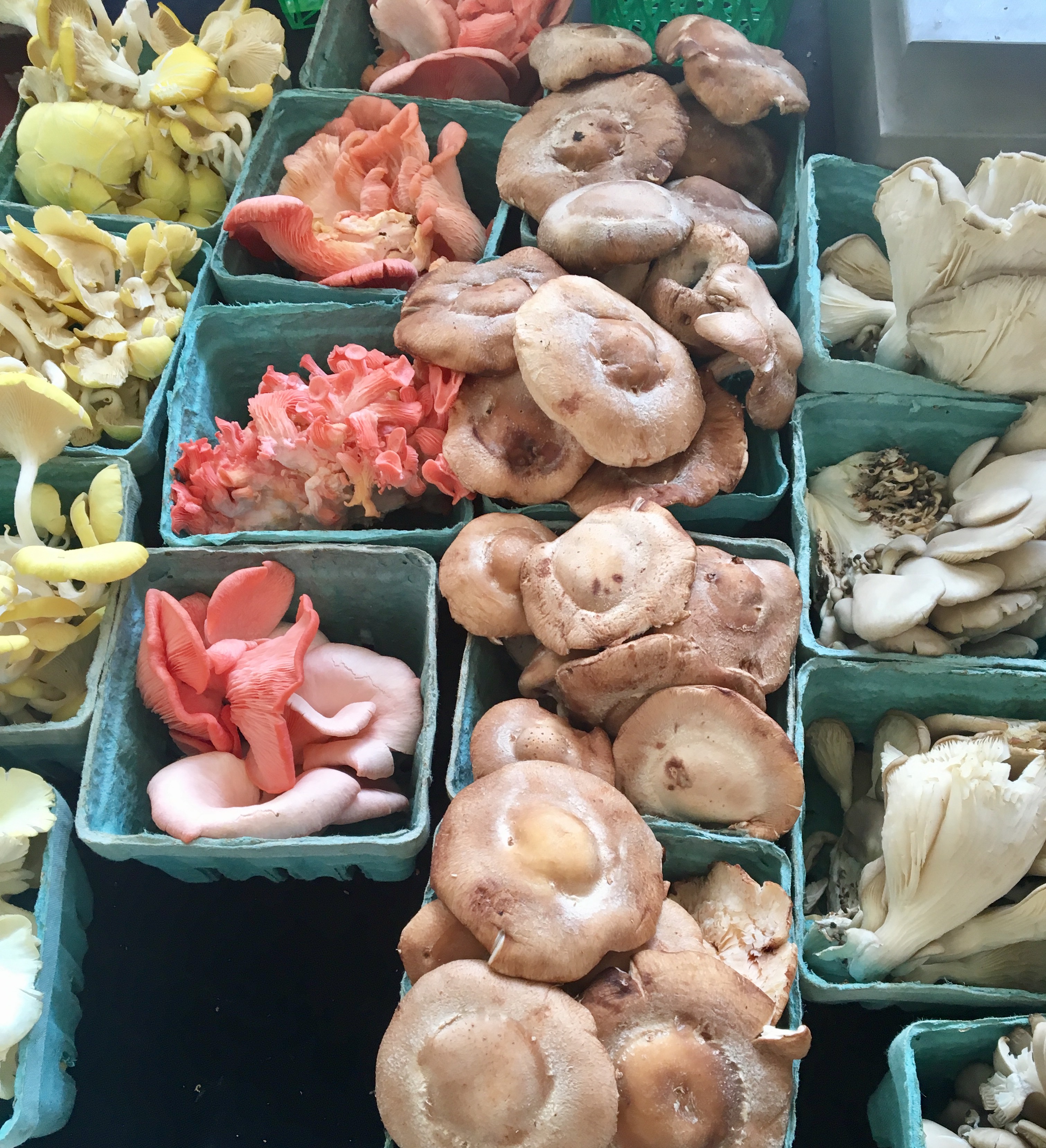 Chanterelles are of particular interest to me. Chanterelles are nearly impossible to cultivate, requiring a symbiotic relationship with old living trees, rainy seasons, untrodden ground and perfect pH soil conditions. Researchers are trying to find ways to commercially grow Chanterelles and have yet to be successful. My Mom and I talked with a man at a local farmer’s market who told us that his grandfather had planted Chanterelles on a secluded piece of property 13 years prior to his harvest of these delicate mushrooms, often sold at farmer’s markets for $40 a pound. I regretfully admit that I’ve never eaten a Chanterelle, however vow to buy a few the next chance I get!