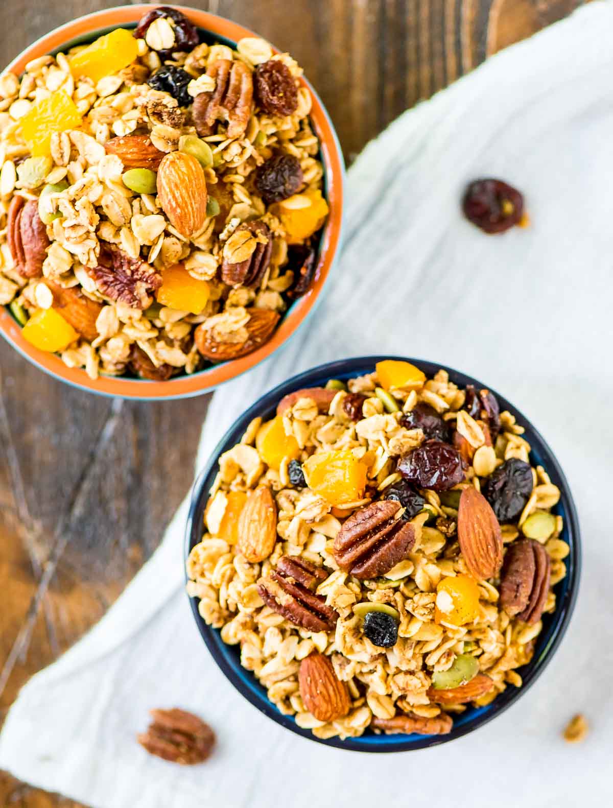 Mix figs and almonds into oatmeal or cereals and read nutrition facts labels. Â Try not to eat anything with <3 grams fiber per serving. Â Try this crockpot granola recipe from well plated.com