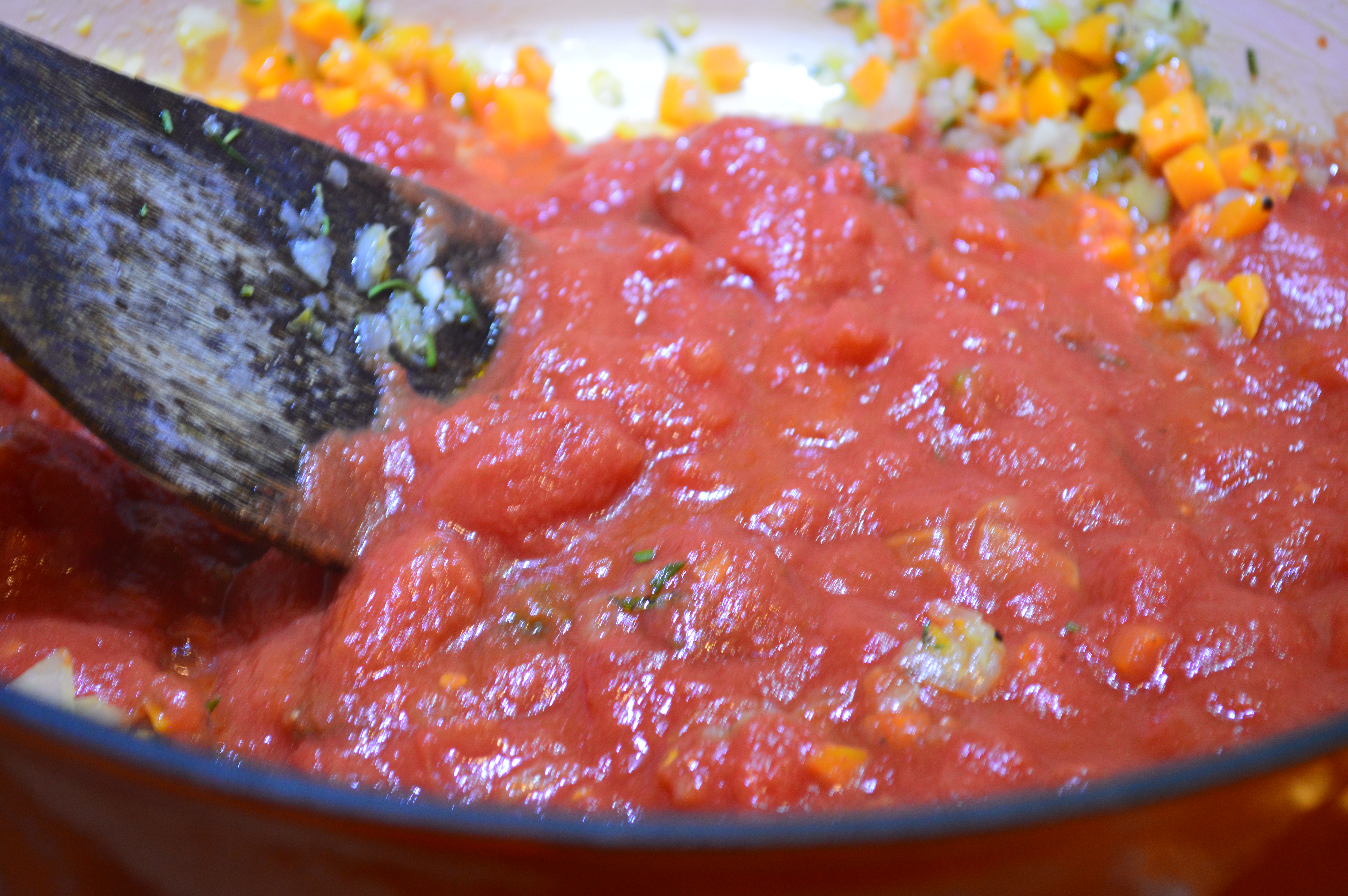 A few fresh green beans from our mini garden are getting thrown in as well as a lot of garlic. I’m tossing in some carrots, rich in Vitamin A, shown to improve immunity and beta-carotene, an antioxidant that prevents cancer causing free-radicals.